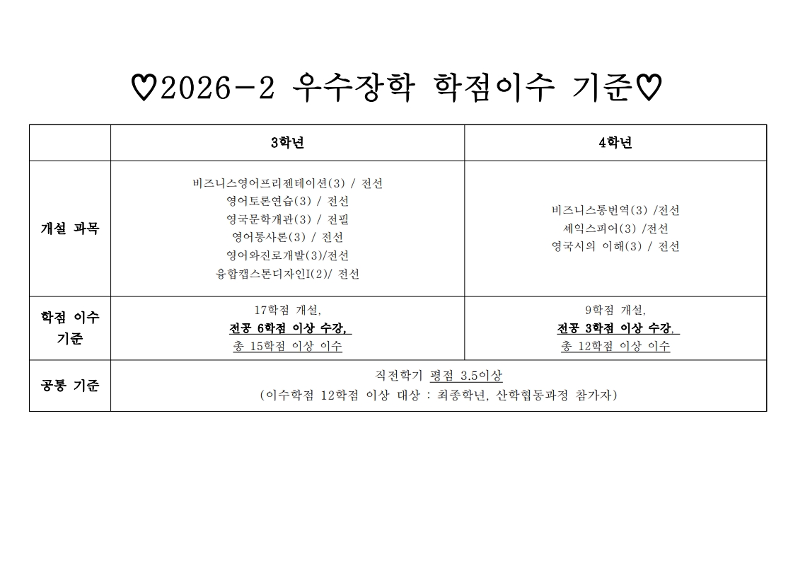 | [필독]2026-2학기 우수장학 선발기준표 및 학점이수 기준 안내 | |||||