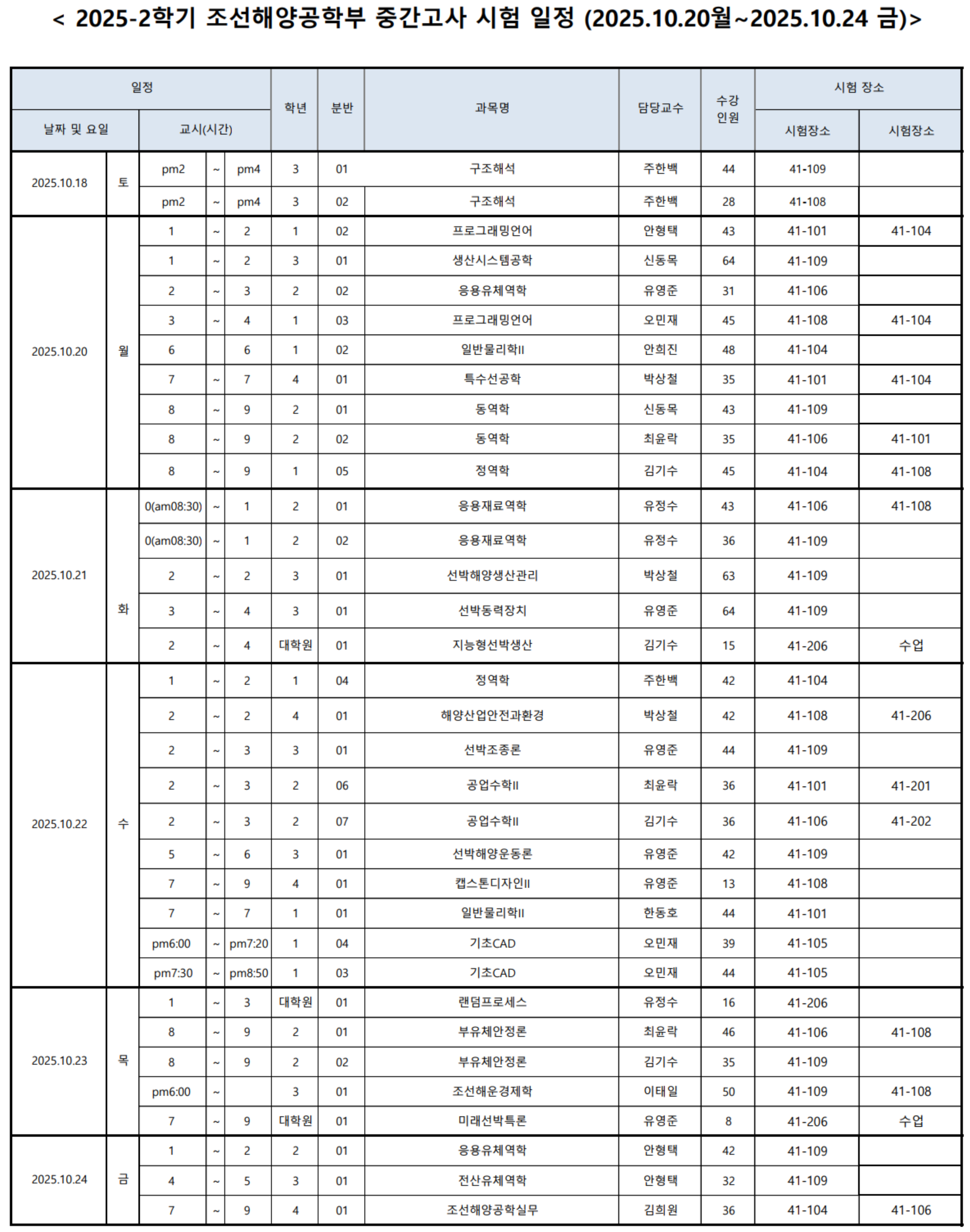 2025-2학기 중간고사 일정안내 | |||||