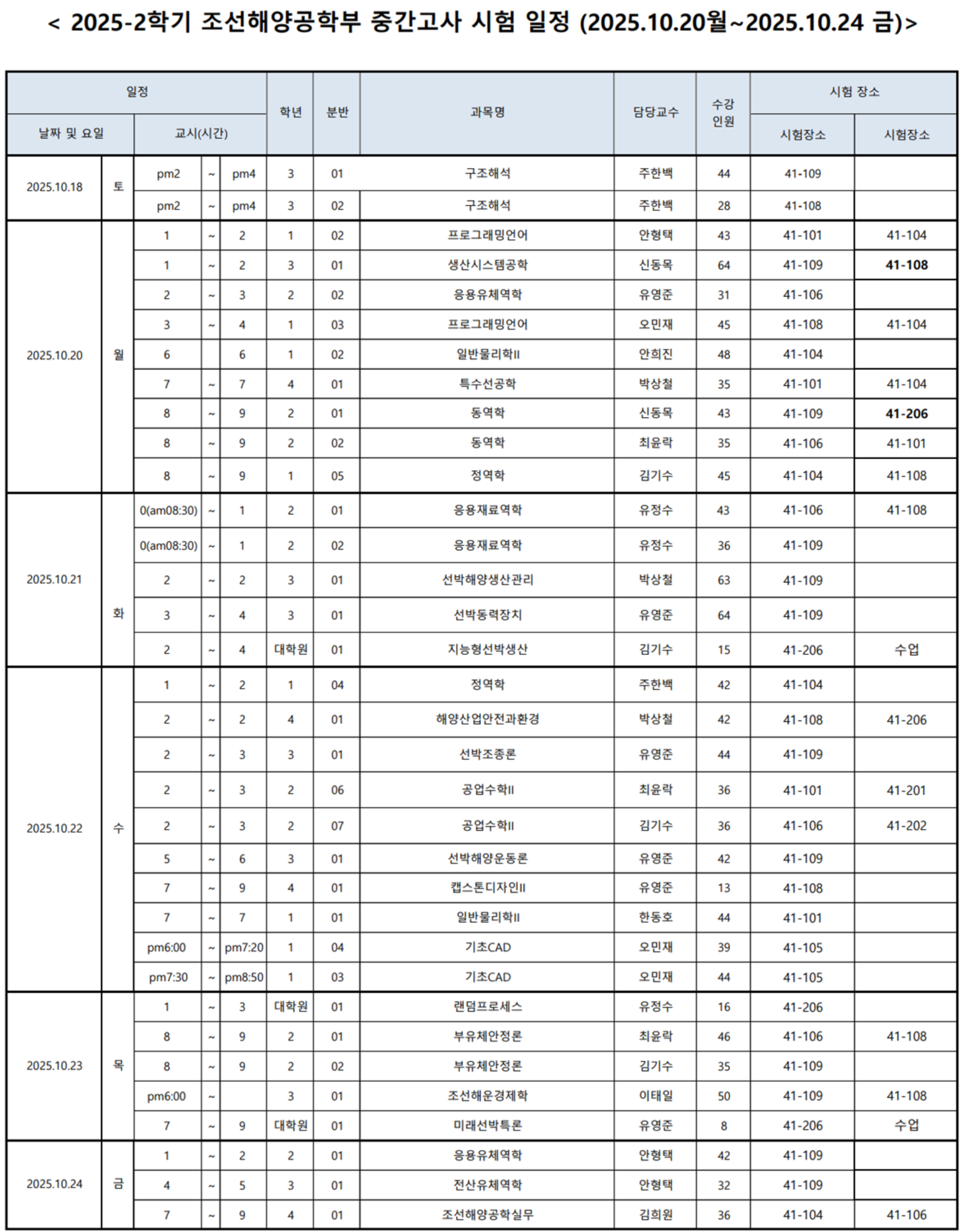 | 2025-2학기 중간고사 일정안내 | |||||