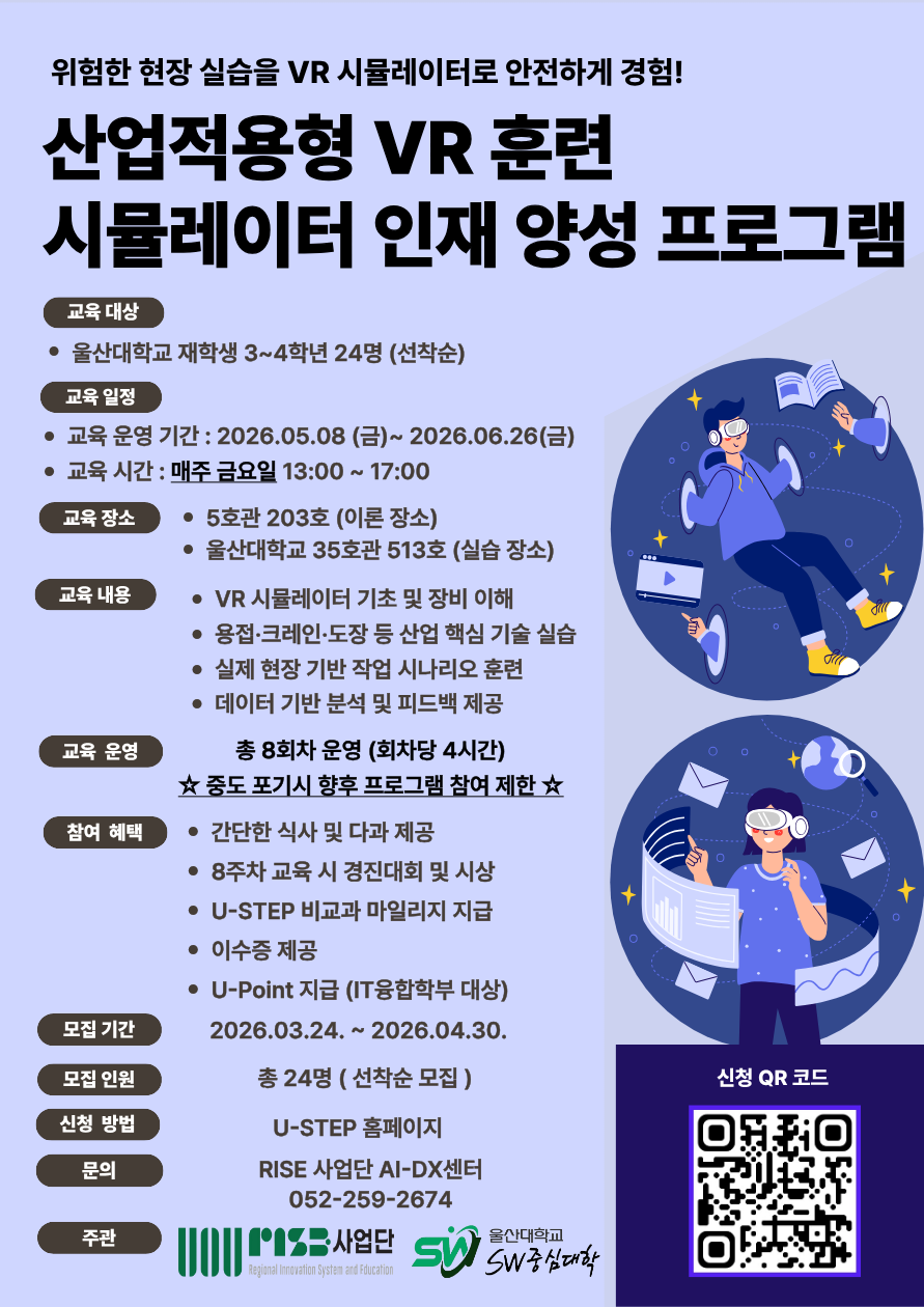 산업적용형 VR 훈련 시뮬레이터 인재 양성 프로그램 안내