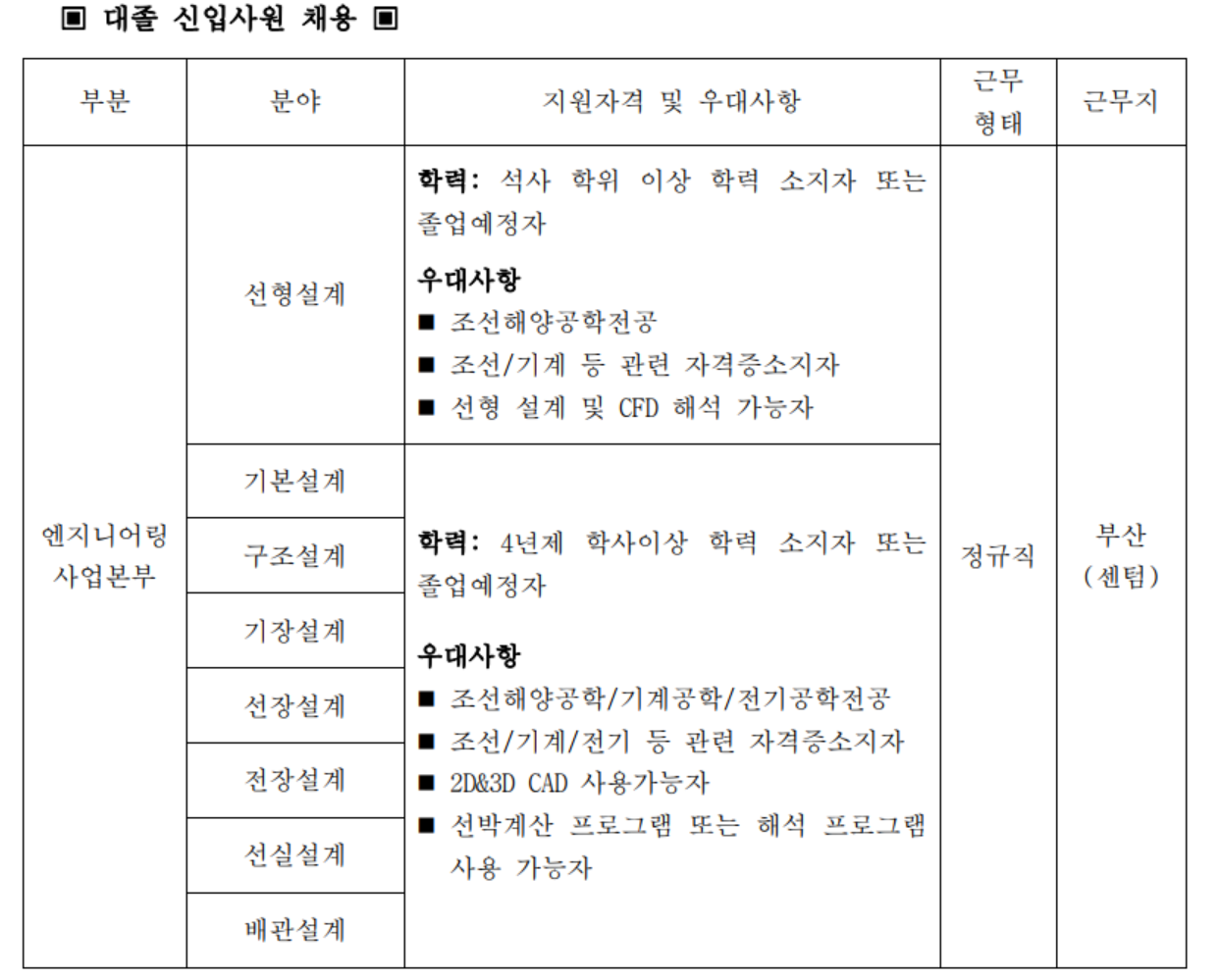 한국선박기술 2025년도 신입사원 채용